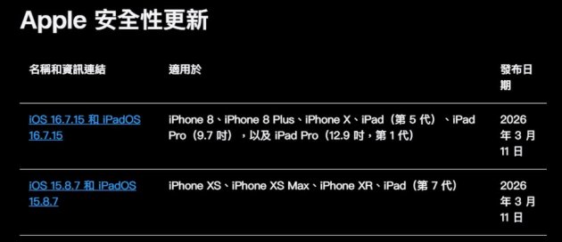 蘋果為舊款iPhone及iPad用戶發布更新,修補已被攻擊套件Coruna利用的漏洞